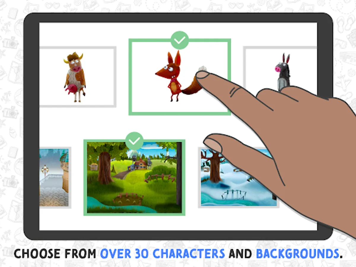 Integrate our famous characters of our best selling apps "Little Fox Music Box" and "Nighty Night" and many more to tell your own story.