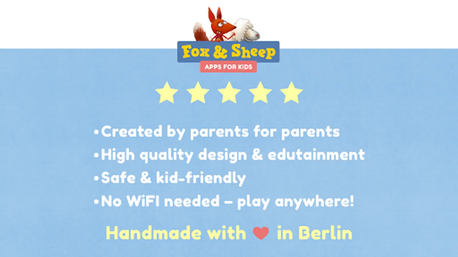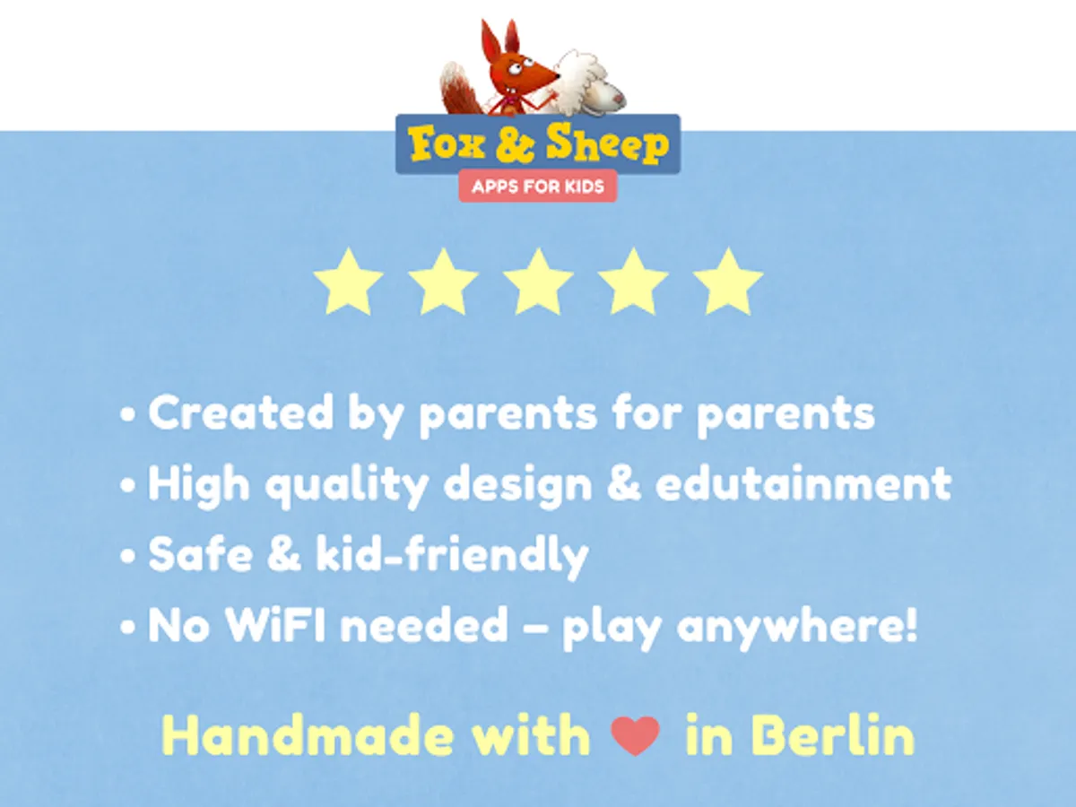 We are a Studio in Berlin and develop high quality apps for kids at the age of 2-8 years. We are parents ourselves and work passionately and with a lot of commitment on our products. We work with the best illustrators and animators around the world to create and present the best apps possible – to enrich the lives of our and your kids.