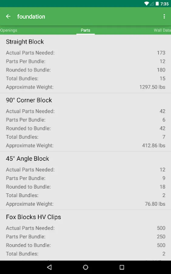 Fox Blocks Project Estimator Mobile is easy to use and available anywhere. Use for your project take offs and estimates. Project Estimator Mobile will estimate ICF quantities including: specialty blocks, opening material, ancillary products, lineal feet of rebar, volume of concrete, and man hours.