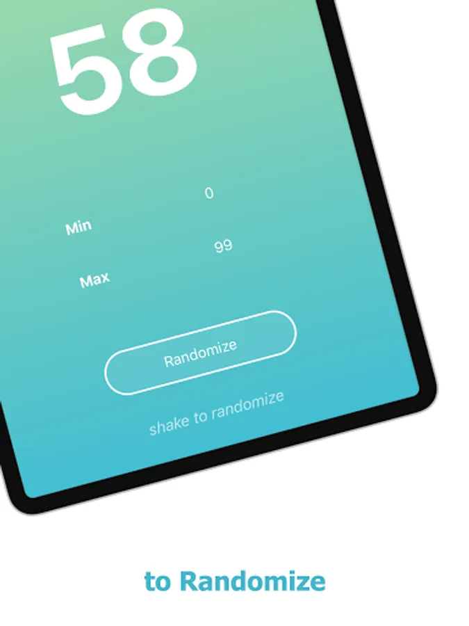 A simple random number generator that is not only a beautiful ux experience but is pretty with its rotating gradients. Use it as a picker, dice, gambling, lotto, lottery and all other fun exciting things.
