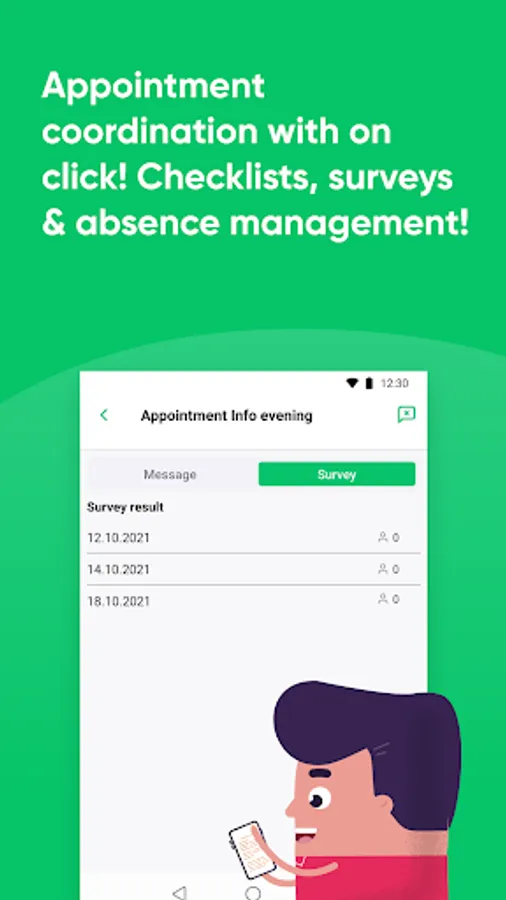 - Plan & organize with checklists, surveys, absence management & appointment coordination