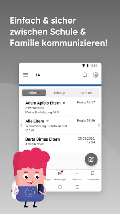 Parents, students, teachers and pedagogues benefit from numerous practical tools such as personal messages, important news, an overview of appointments, file storage and much more. In this way, every user can access, send and exchange relevant information quickly, easily and anywhere, also via smartphone.