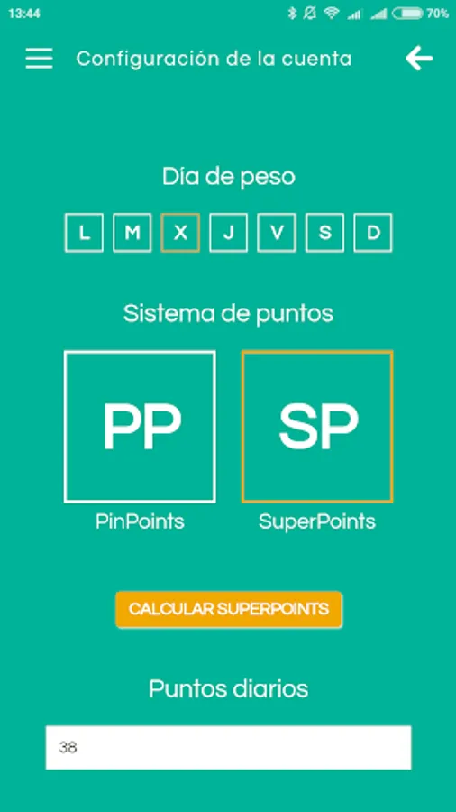 There are two different methods of scoring in the application, which is developed to help manage your diet points, keeping track of your daily and weekly capital.