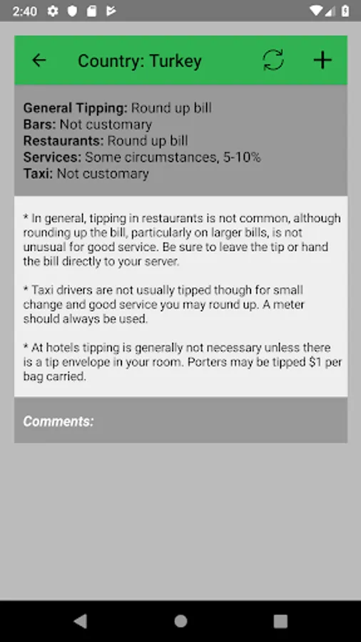 * Details pages for every country show you how much to tip at restaurants, bars, for common services, as well as taxis.