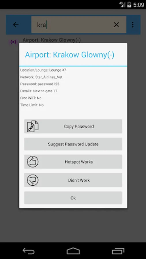 *In ‘List View’ you can update passwords for airports already added (when you’ve noticed some changes). As you travel you can also rate the wireless hotspot information to let us know if the details worked for you or not. Based on traveler feedback, the connection information is updated, verified, or removed.