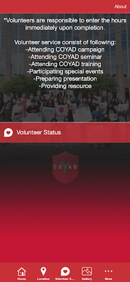 Welcome to Council of Youth Anti-Drug “COYAD”. COYAD is committed to build a healthy network for youth by providing drug prevention education and leadership training in order to promote a more valuable and meaningful life. Download our APP to: -Stay up to date with upcoming events -Join to be a volunteer and tenter volunteer hours -Network to build Camp, Campaign and Center -And much more!