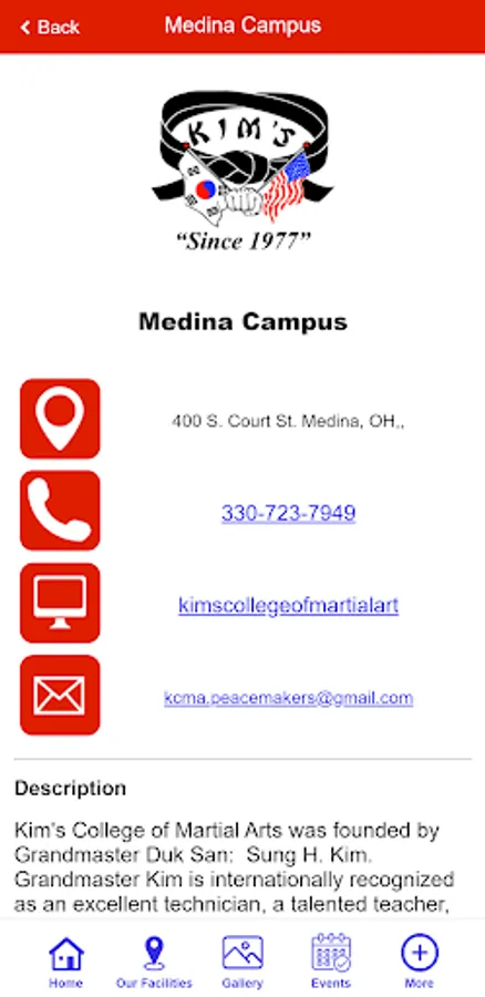 Welcome to the official app of Kim's College of Martial Arts, Northeast Ohio's premier martial arts headquarters for children, families, and adults! Kim's College of Martial Arts has served our community for over 40 years and we are dedicated to promoting peacemaker values through the dynamic arts of Taekwondo, Hapkido, Yudo, and Kumdo.