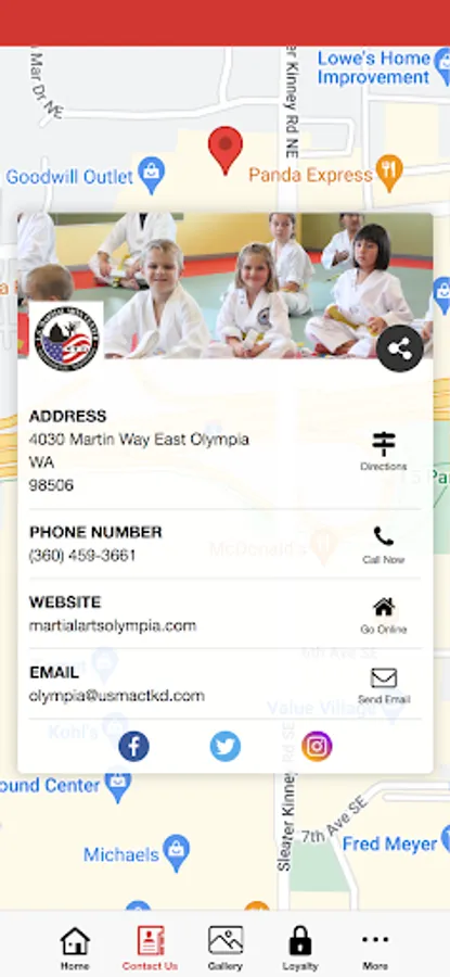 Welcome to the official APP of U.S. Martial Arts Center (USMAC), Thurston County's largest and leading martial arts school. For over 35 years, Grand Master Lee's USMAC has been developing and perfecting a Taekwondo & Martial Arts Program that enhances the lives of adults and children. We feel that being a Martial Artist is more than kicking or punching, it's being a good person and living the Taekwondo way of life. This APP was designed to help with that. We are ready to provide a positive martial arts experience to the Olympia, Lacey, Tumwater Community. Download our APP to: - Stay up to date with Upcoming Events - Access the class schedule - Receive live instant notifications - Watch videos - Contact our location - GPS directions - Share benefits with friends and family - And much more! Thanks