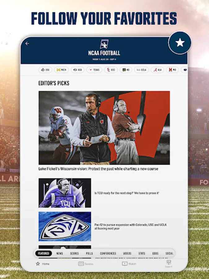 ●KEEP TABS ON YOUR TOP PICKS: Stay in the loop with personalized feeds packed with news, highlights, and scores from your favorite teams.