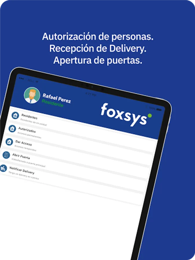 Manejo de residentes, manejo de accesos al edificio, videollamada a puerta de edificio, abrir puerta de edificio.