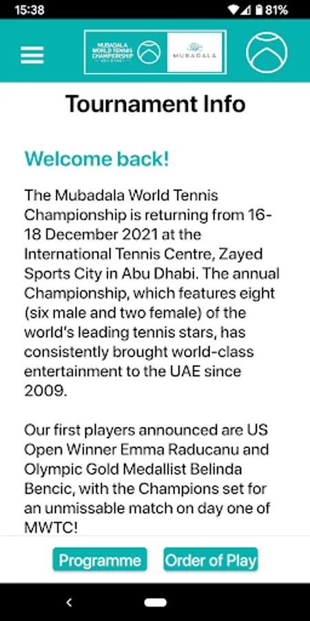 Order of Play, Live Scores, Venue Map, Tournament’s Programme... all you need at your fingertips.