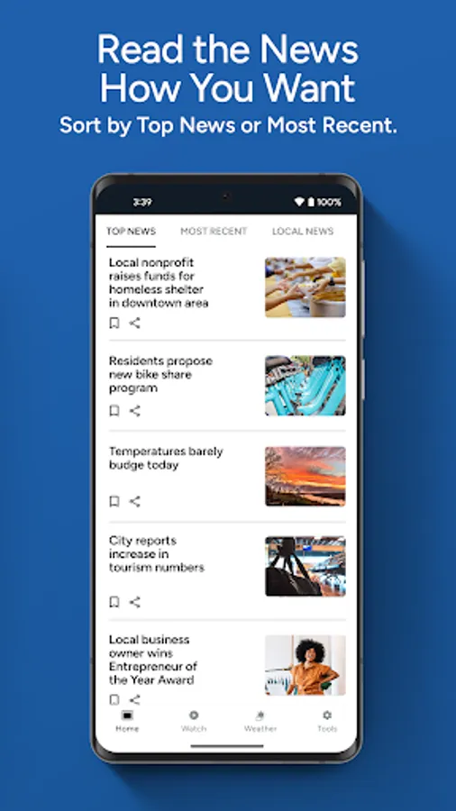• Tap 'Top News' to read the most important news of the day as curated by our local news teams.