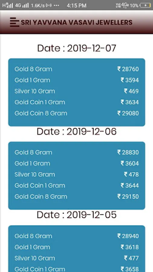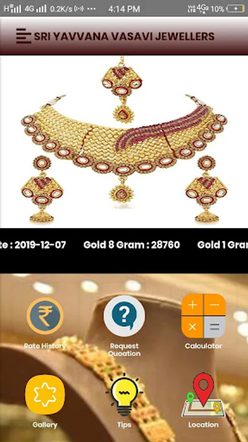 Sri Yavvana Vasavi Jewellers application mainly for daily gold and sliver rate updates , Jewelry Designs. This application help to customer to know the daily rates about Gold and Sliver.