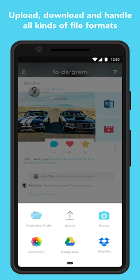 Foldergram is the World’s First Social Cloud Storage App. With Foldergram you can handle all kinds of content under one roof - no need to download different apps for file storage, chatting, or sharing videos, photos and documents. Sharing business cards and brochures has become a thing of the past!
