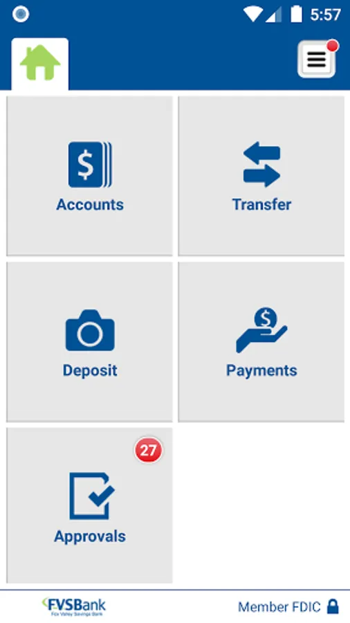 • Approve transactions scheduled through FVSBank Business Online Banking including fund transfers and ACH transfers