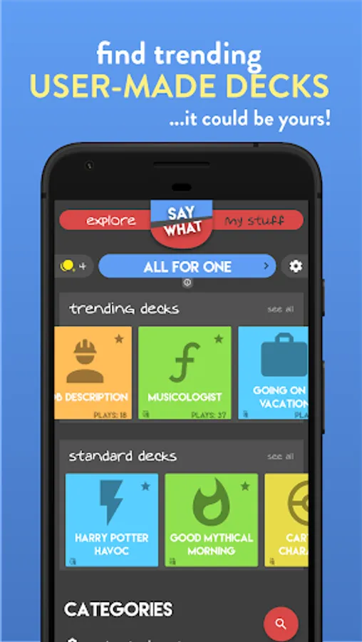 If you enjoy party games like charades, heads up, Speech Jammer, monikers, or catch phrase, you’re gonna love how SayWhat brings even more word guessing fun to you and your friends!