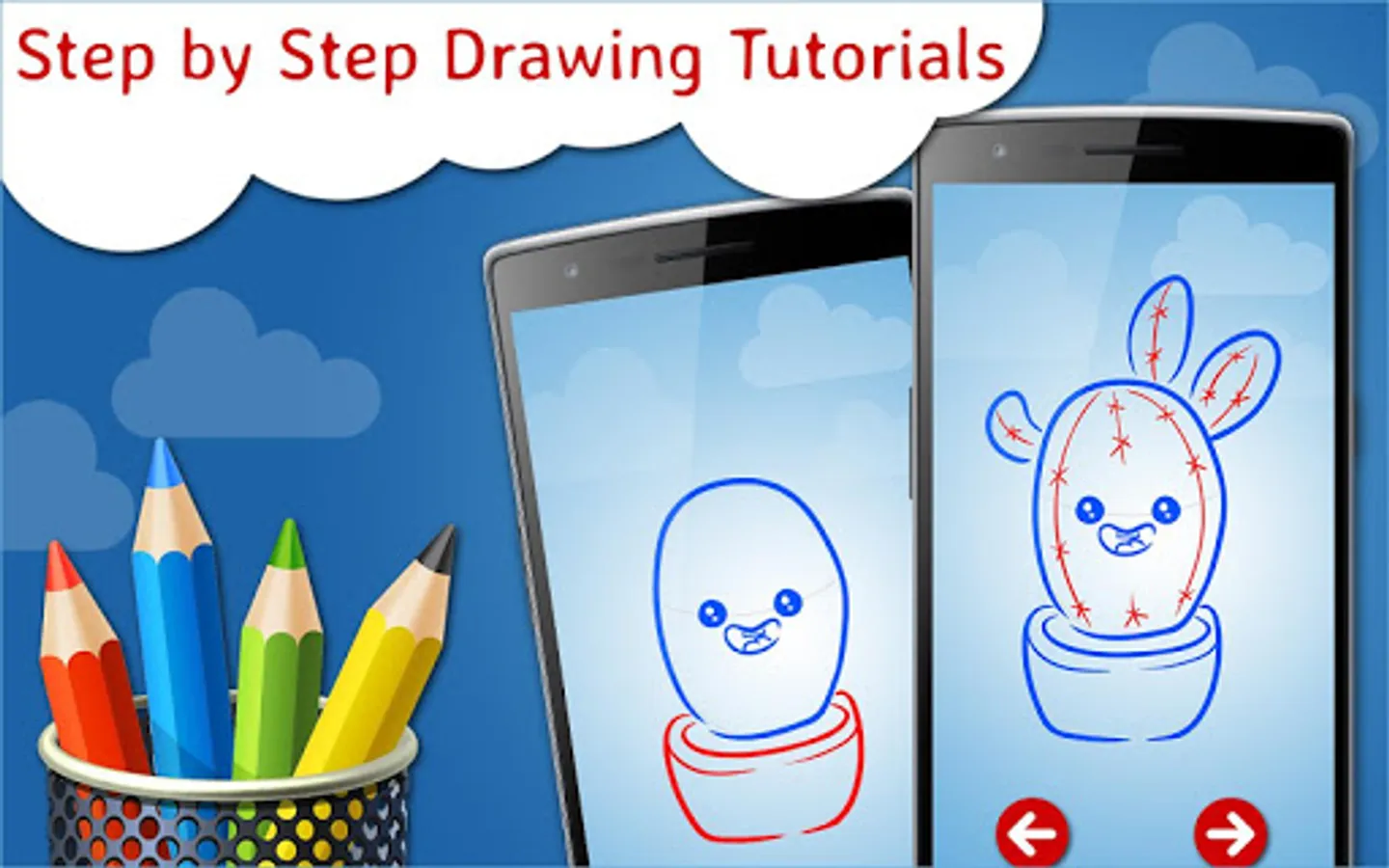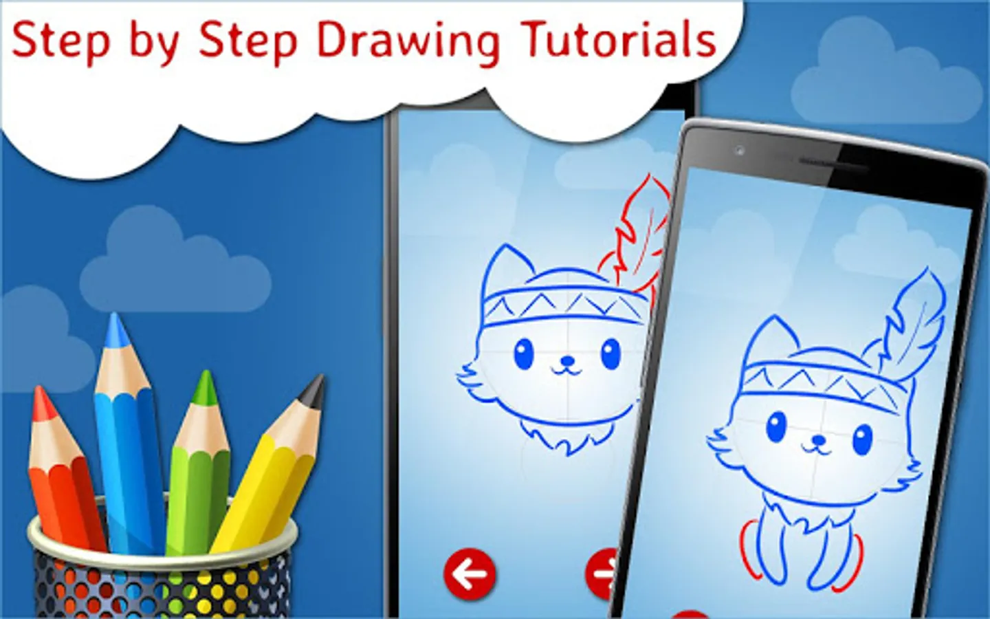 In this easy drawing app you will find different tutorials how to draw step by step for beginners: