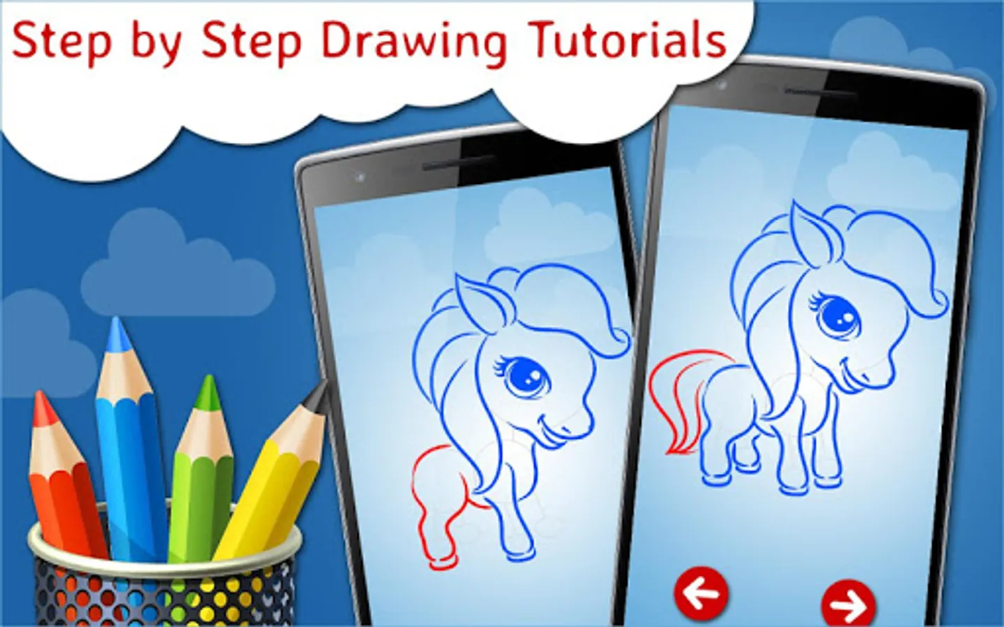 It is simple to draw little pony. Just take a pencil and paper. Than choose any lesson you like to try drawing and repeat every step of drawing tutorial. You don't have to be a skilled painter to create a nice pictures. Just don't hurry. If you find some difficult steps just cover your drawing pad with your paper and use our secrete method «drawing on the pad»!