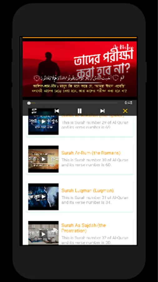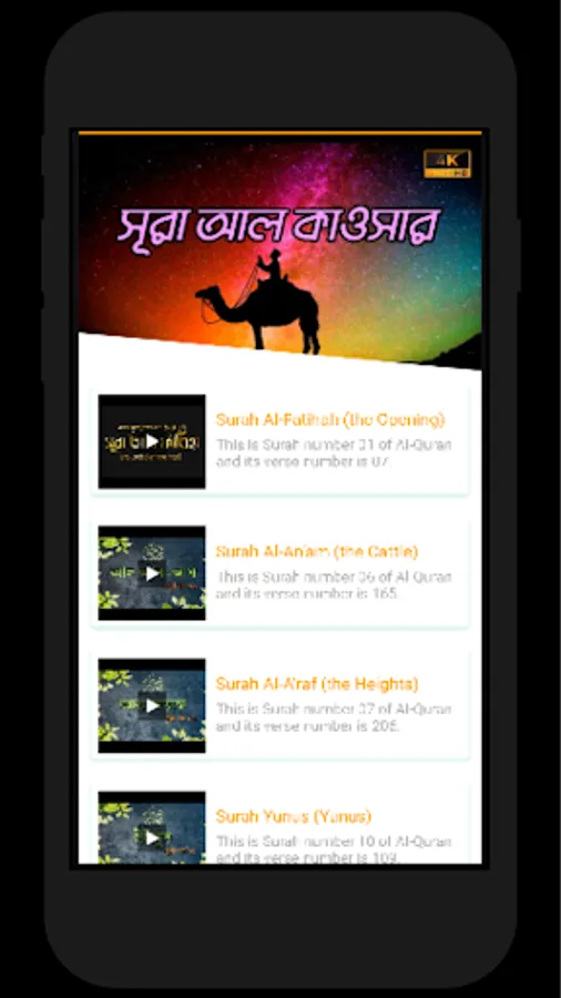 Quran video player and learning app contains separate videos of each surah with all Quran Bengali translation. And the number of verses of any surah and the number of surahs are mentioned. In the app all Drishti Nandan videos are given. And given how to read and learn Quran. Kaaba, Medina, Quran, Masjid Al Aqsa and Blue Mosque of Istanbul have been added to the app. Hopefully, Quran video player and learning app will be very useful for all of us to know and learn about Quran.