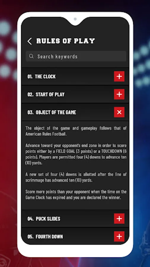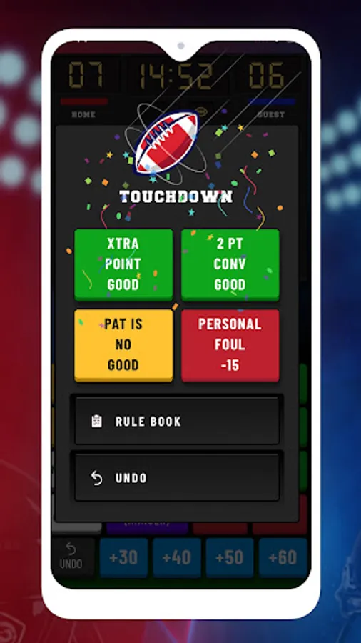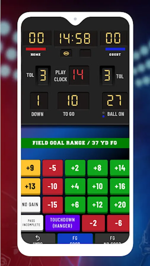 The Fozzy Football™ mobile app is intended to be used in conjunction with any and all of the versions of a physical Fozzy Football™ game board, manufactured and sold by Omnibron Incorporated. Used in tandem with the game board, the mobile app provides users with game-tracking functionality and is designed to track player’s field position, game situation, and other key elements such as time on the clock, timeouts remaining, score, etc. There is an announcer that provides real-time audio feedback to users based upon gameplay outcomes. Configurable settings permit users to turn on/off features like the play clock and control the volume levels of audio functions like crowd noise and play-by-play commentary.