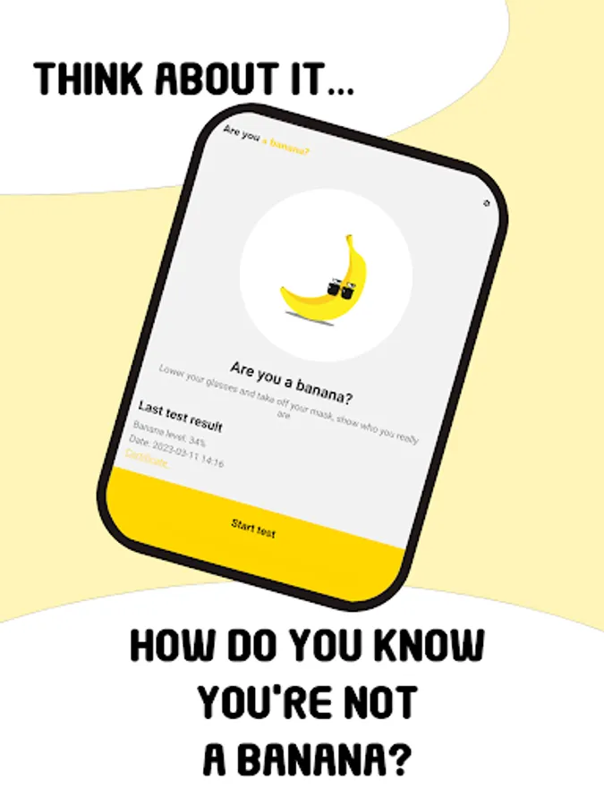 But fear not, because I've got the solution: the "Are you a banana?" app. With this fun and addictive trivia game, you can finally find out if you're a hidden banana yourself, or if the people around you might be secretly made of fruit.