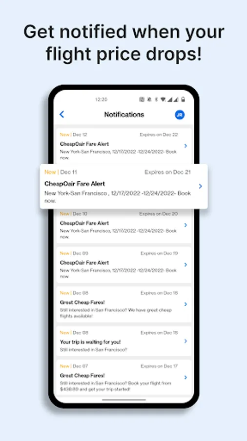 CheapOair lets you know when to buy cheap flights. Simply keep an eye on a flight and get a notification when the price drops!