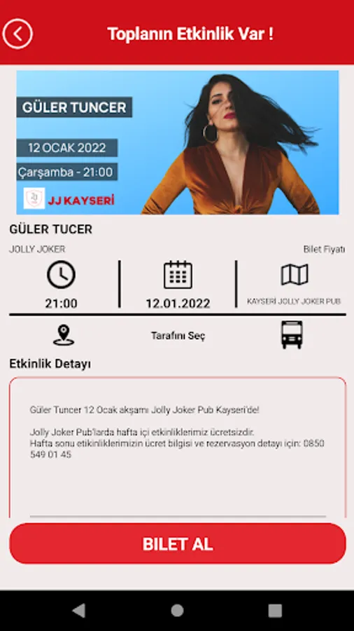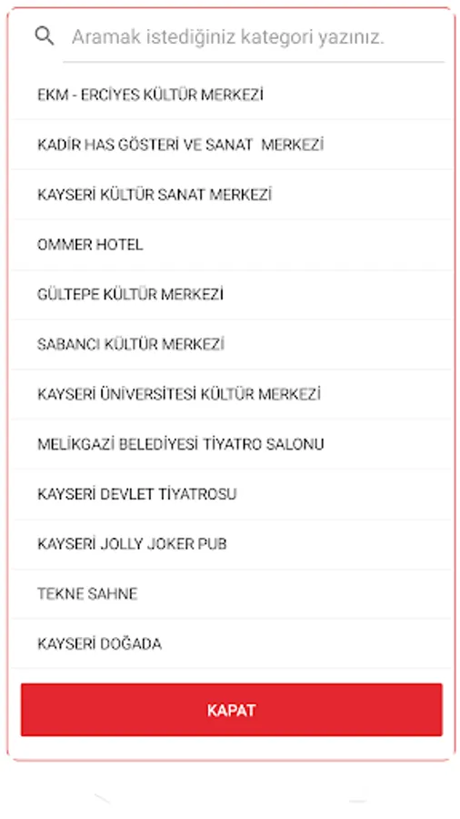 It is a platform where all local and national social events (Concert, Theatre, Exhibition, Seminar, Conference, party etc.) held in Kayseri are broadcast. Established in 2016, this organization mobile application is a platform that tries to be useful with content that provides many benefits such as hearing about events, buying tickets, describing how to get to the halls and sales points.