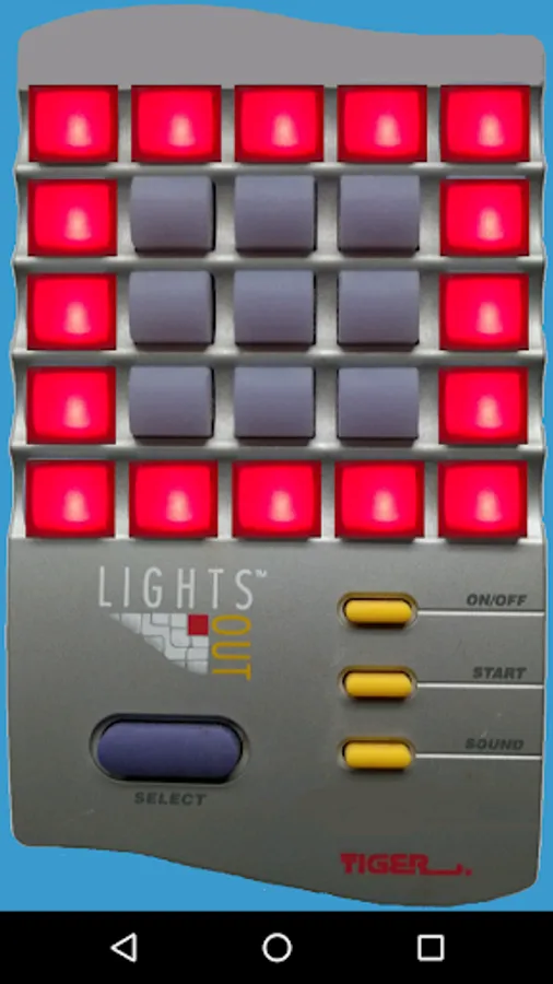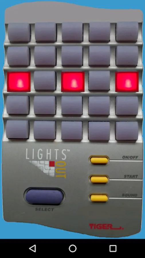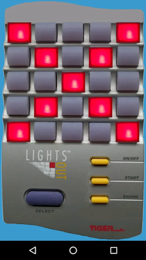 The app is a simulation of the original Lights Out electronic device manufactured in the '90s by now defunct Tigers Electronic. The game consists of a 5 x 5 light matrix. By pressing on a light, it will toggle on or off along with those that are adjacent.