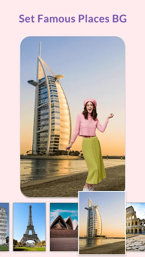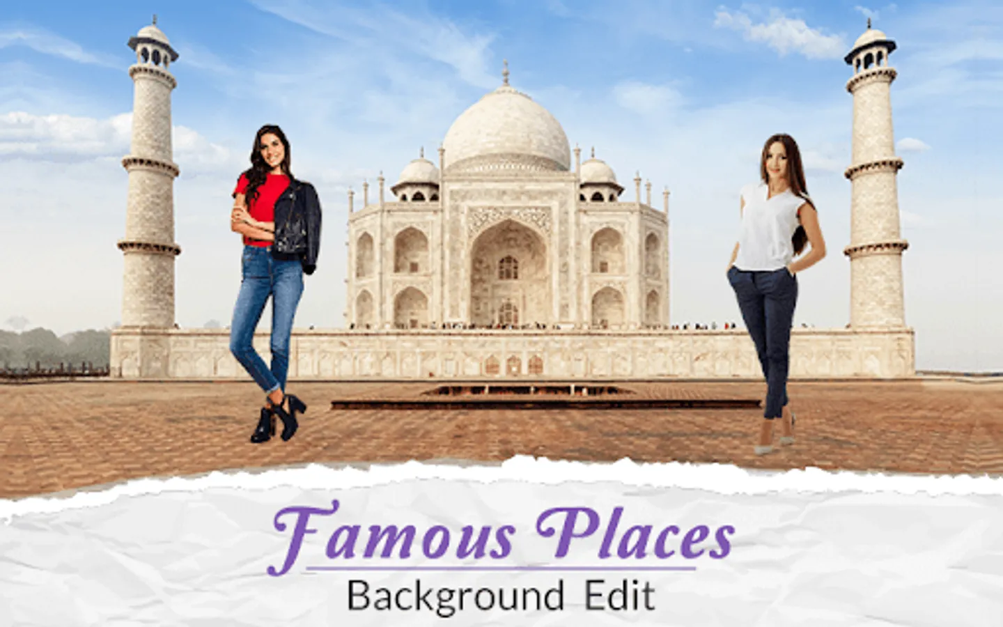 In the World Tour Places Photo Editor app, it is easy to change the background and edit the favorite photo.