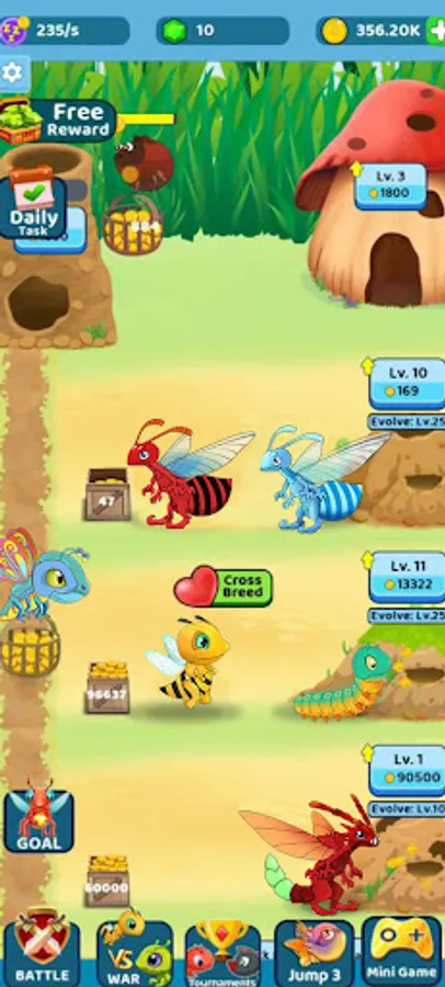 Build new nests, assign cute Ants and witness evolving them into legendary Ant while you level up nests.