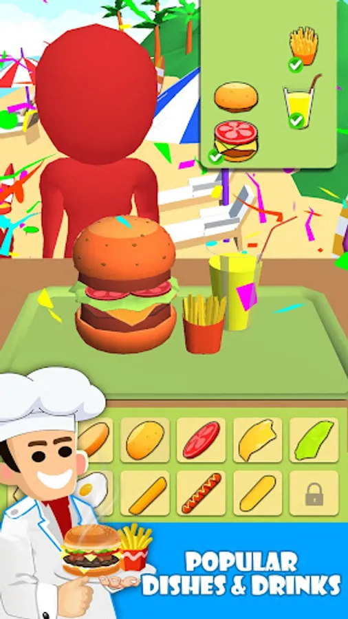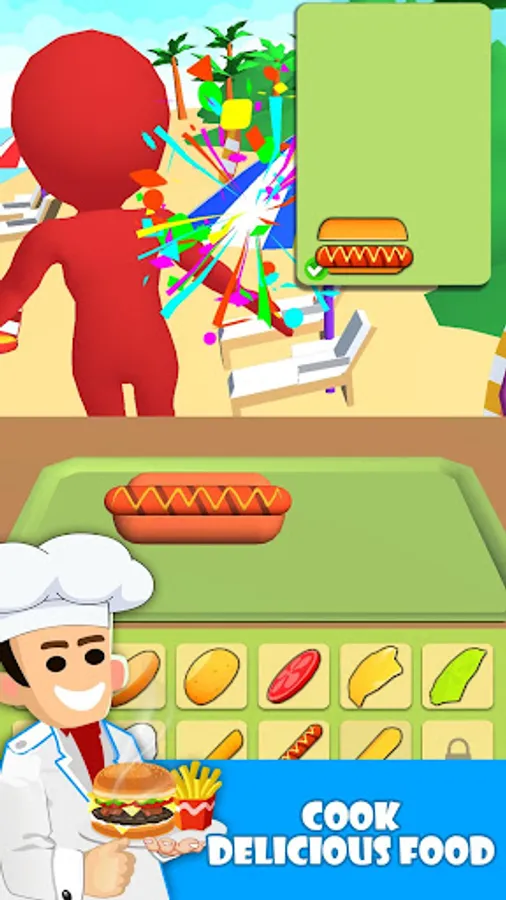 Tap to cook delicious and yummy dishes in your own kitchen. Serve those dishes to hungry beach-goers.