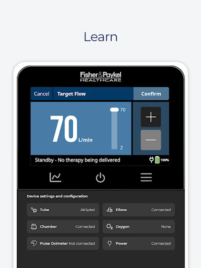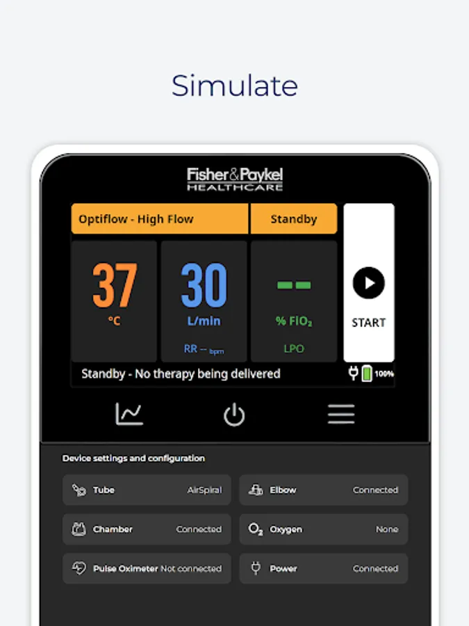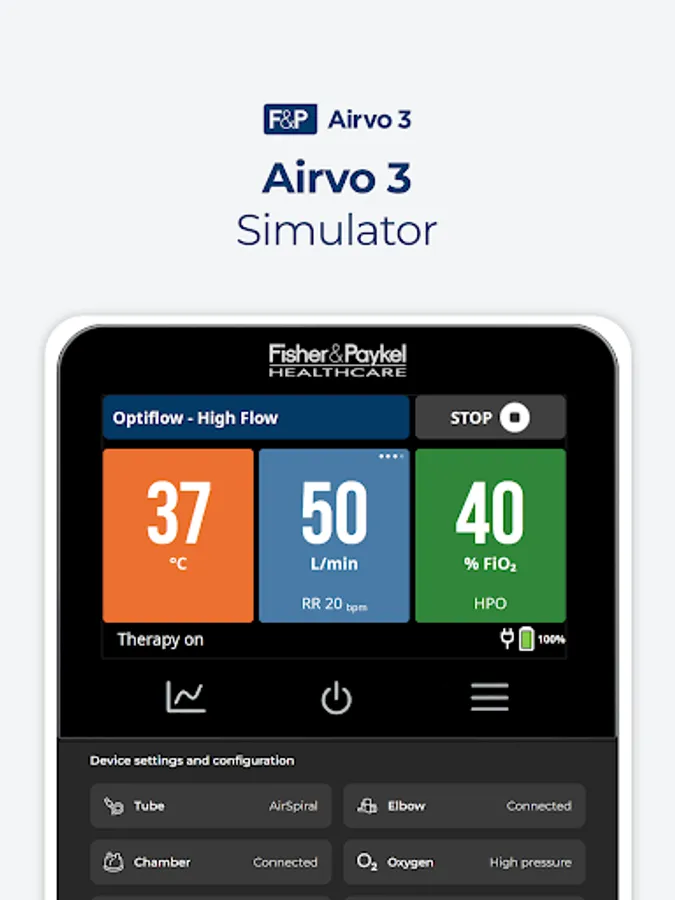 This app simulates the user interface of Fisher & Paykel Healthcare's Airvo 3 to help you learn how to use it.