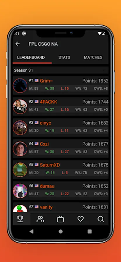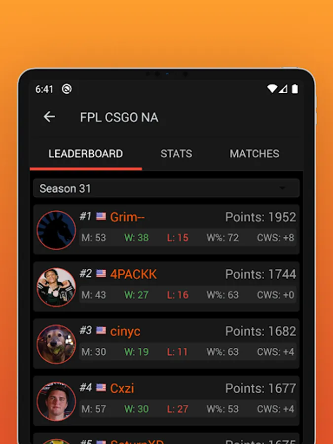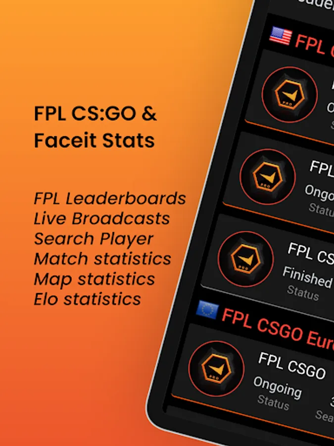 FPL CS: GO & Faceit Stats Application is designed for you to easily follow Faceit CS: GO Pro Leagues and CS: GO statistics on mobile. In this App, you can follow the Dates of FPL Leagues, Current FPL CSGO Rankings, Statistics of Played Matches and Live Streams. You can also find out your own statistics and elo.