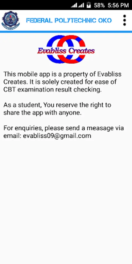 As a student of Federal Polytechnic oko Anambra state, this app is essentially for the checking of school result (CBT) without typing the web address.