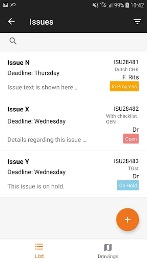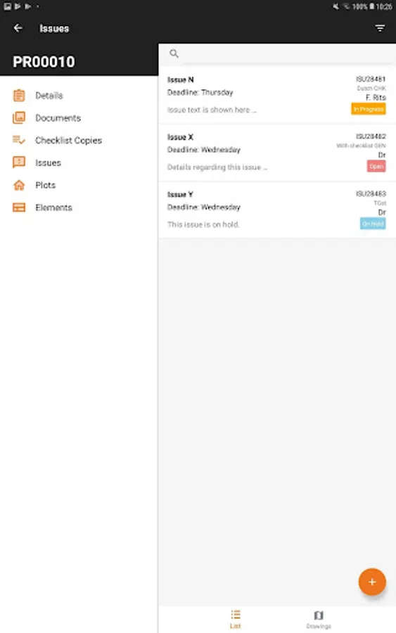 The 4PS On-site App can be used for recording and processing issues for projects, for uploading and sharing documents and pictures of a project and filling in standardized checklists which are sent to the back-office.