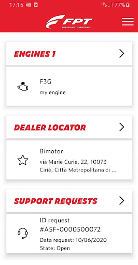 The MyFPT app connects you instantly with your engine to retrieve main information and require some different services: