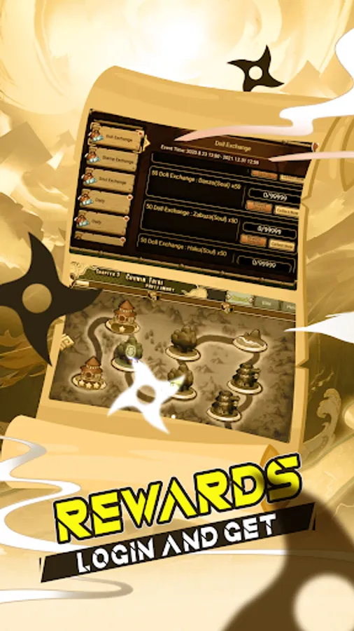 Collect all the currencies in the game to help you train hero. Ninja Assemble - Rebirth Mania has various currencies - Diamond, Arena Coin that can be from Hero War arena, Hero coin, Guild coin and Shadow coin that can be obtained from shadow fight arena.