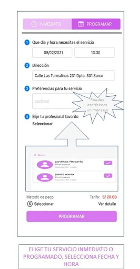 We are a 100% Peruvian Platform, available for iOS and Android systems, that connects users and beauty professionals, located close to where you are to assist you immediately at your home or wherever you want
