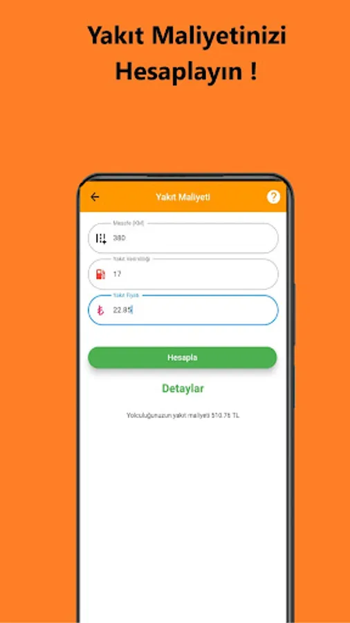 + You can calculate the fuel cost of your trip by entering the distance traveled, fuel efficiency and fuel cost!