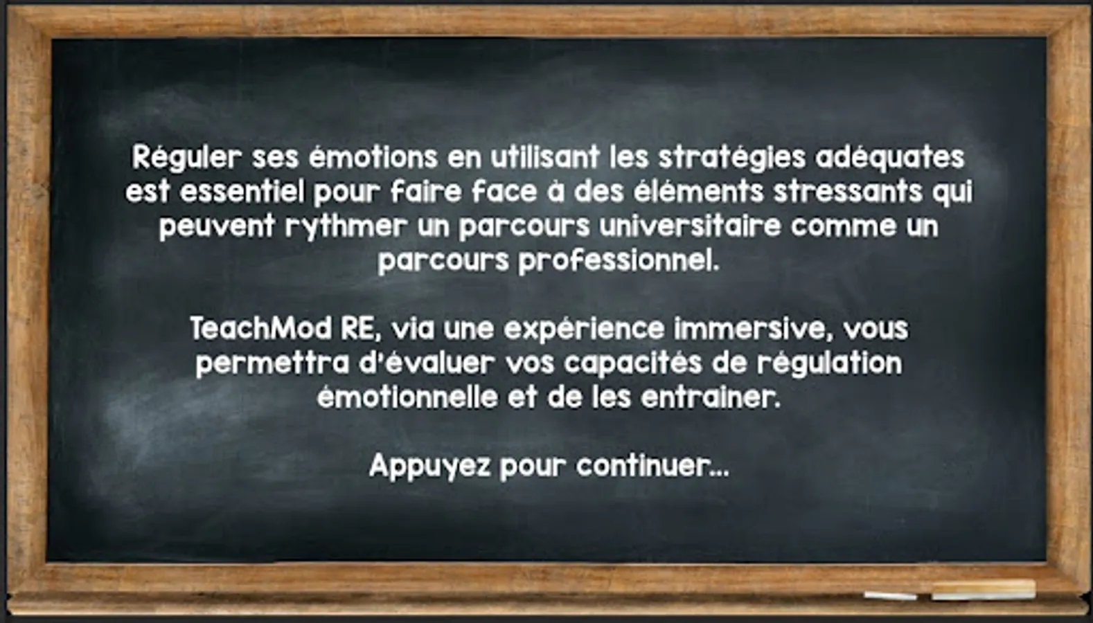 TeachMod RE, through an immersive experience, will allow you to assess your emotional regulation abilities and train them.
