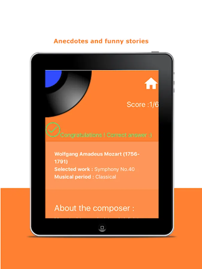 *****Test and Improve general knowledge while having fun : A short description is provided for each composer and sample. For example, did you know that Mozart gave his first performance in front of an audience at 6? Or that Schubert left behind over 1000 pieces after his death at the age of 31?