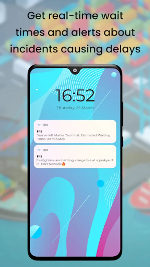 Fr8 App notifications have urged drivers and dispatchers to avoid terminals with long queues, and empowered them to make better choices. The FR8 App may notify you of a delay in progress before the port authority become available, helping you plan with your dispatcher or customer.