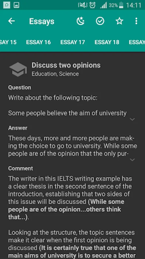 The purpose of the IELTS Writing application is to provide helpful and free materials and resources for self-study of IELTS. The application provides an offline mode so you can continue to develop your writing techniques anywhere.