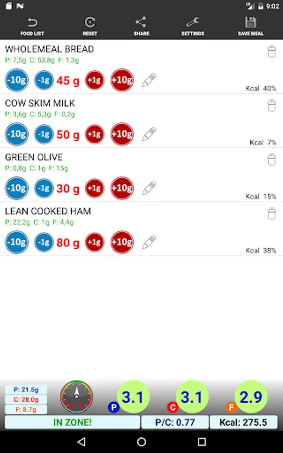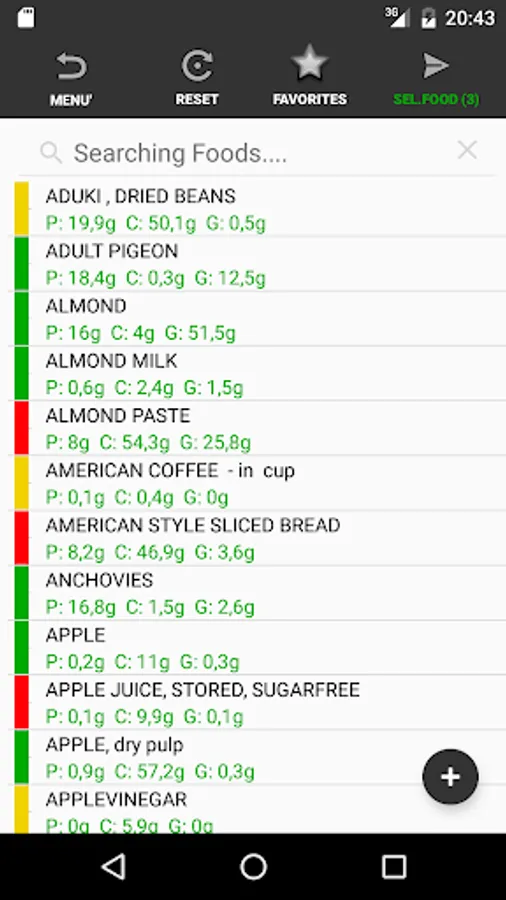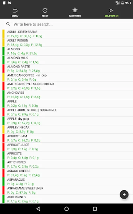 -> More than 600 foods already entered! You can also CHANGE and ADD new foods.