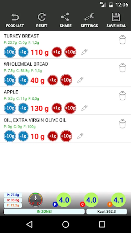 -> Calculation of calories (kcal), proteins, carbohydrates and fats.