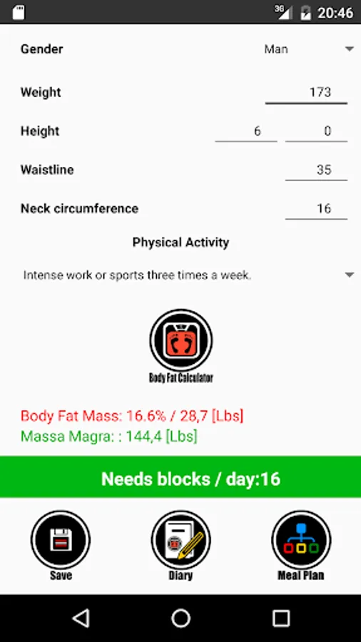 -> Calculate your lean mass, fat mass and needs directly in blocks.