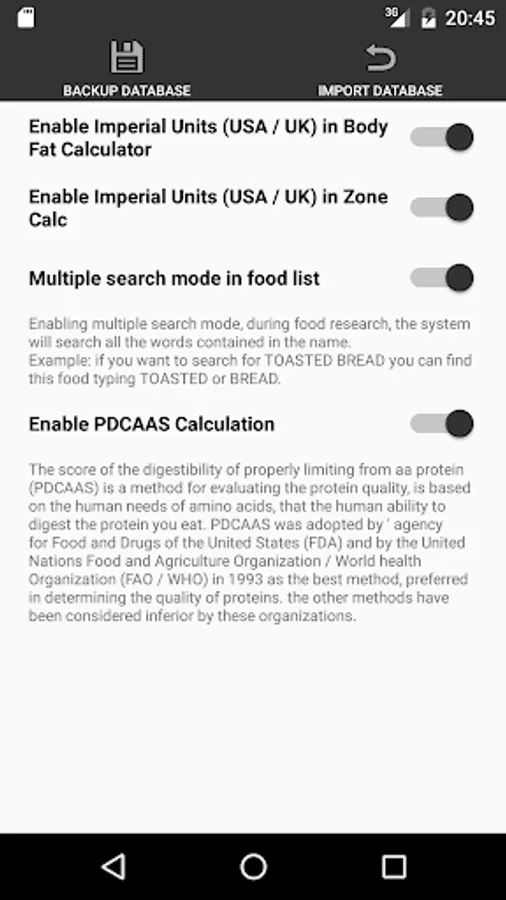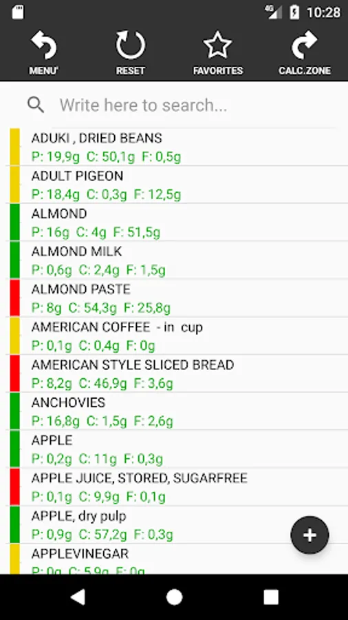 -> More than 600 foods already entered! You can also CHANGE and ADD new foods.