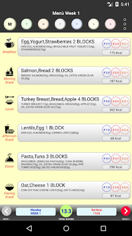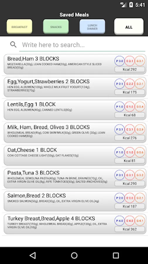 -> Calculation of calories (kcal), proteins, carbohydrates and fats.