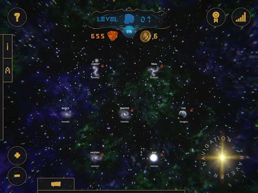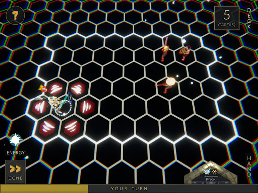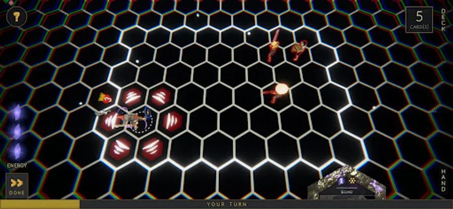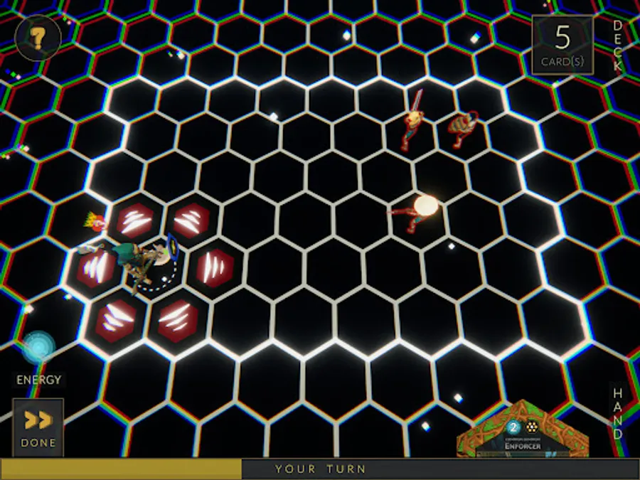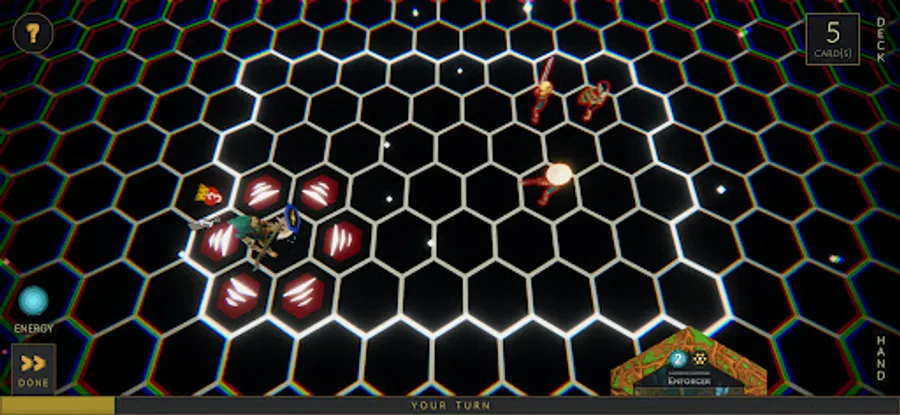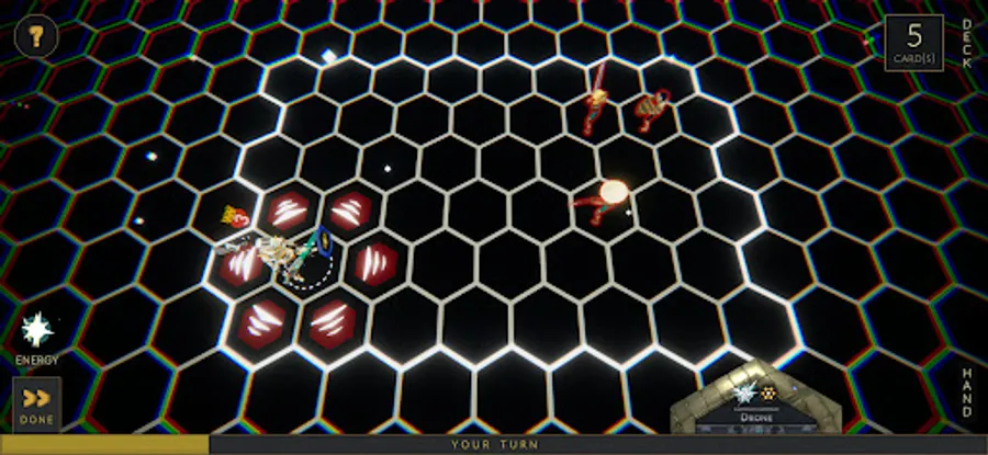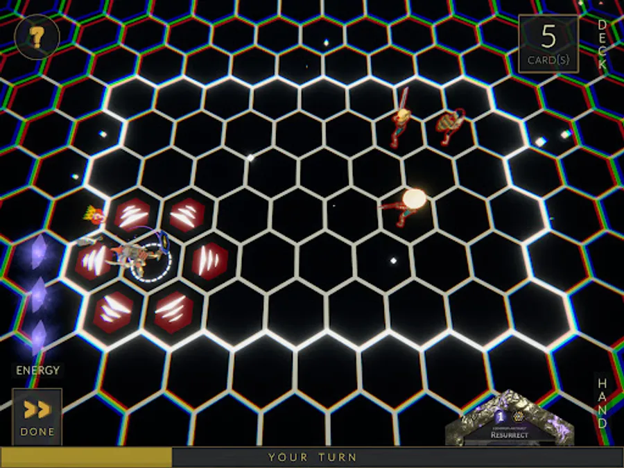 Battles utilize turn-based combat on a hexagon board where every attack, move, and card cast has one of six unique patterns. You will start every battle with your cosmic being, and all cards are cast from them. To win, simply ensure your cosmic is the last one standing.