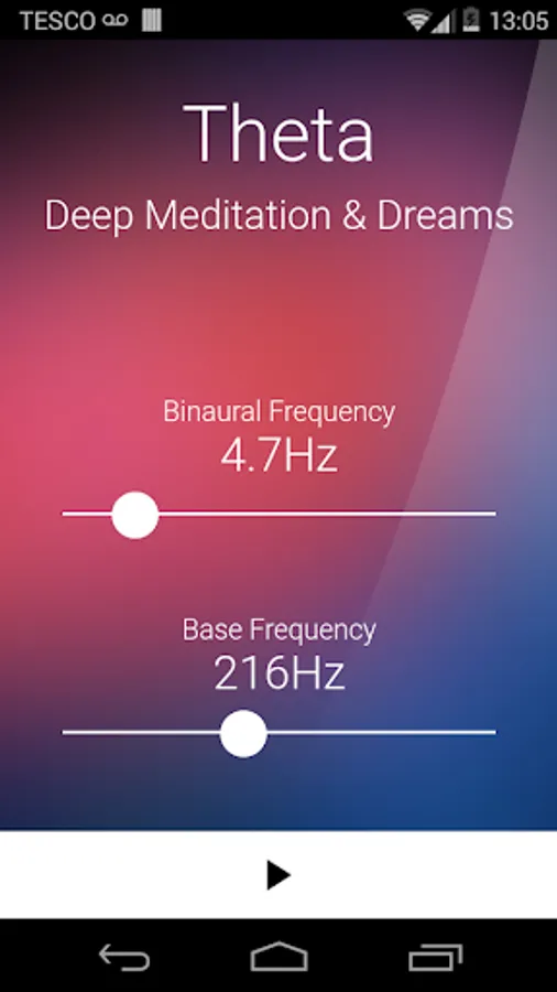 Binaural Soundscapes is an app that allows you to create your own binaural beats and soundscapes. You can select any binaural beat frequency you want, to a 0.1Hz accuracy, and you can also blend in up to 6 soundscape effects.